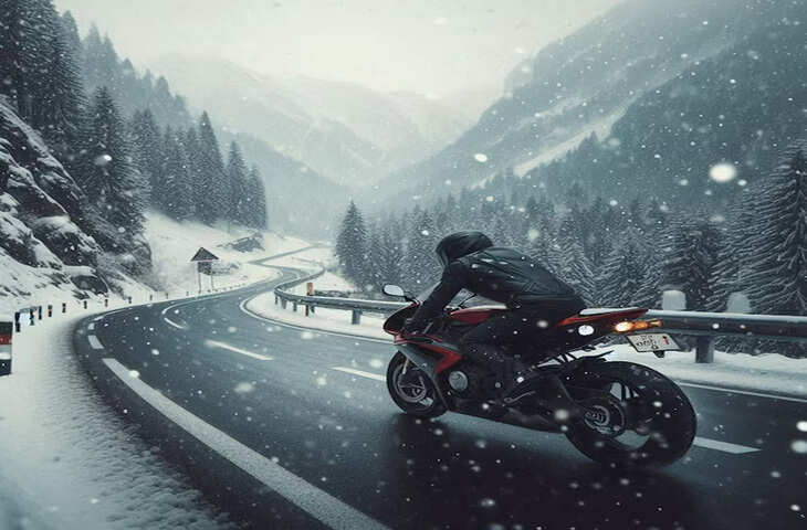पहाड़ों पर बर्फबारी के दौरान बाइक चलाते समय आपको हमेशा अपनी बाइक की गति धीमी रखनी होगी। गति पर विशेष ध्यान देने की आवश्यकता है, विशेषकर ढलान वाले स्थानों पर। ऐसी स्थिति में हमेशा अपनी बाइक नियंत्रित गति से चलाएं।