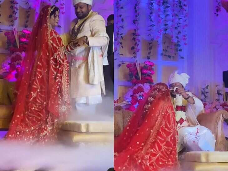 शादी के वायरल वीडियो में दूल्हा-दुल्हन एक-दूसरे को वरमाला पहनाने के लिए खड़े थे। लेकिन एक अन्य क्लिप में दूल्हा कुर्सी पर बैठा नजर आ रहा है और दुल्हन घुटनों के बल बैठी नजर आ रही है. दरअसल, शादी से एक दिन पहले दूल्हे का एक्सीडेंट हो गया, जिसके बाद उसके पैर में फ्रेक्चर हो गया। ऐसी स्थिति में वह ठीक से खड़े होने की स्थिति में नहीं थे। इसलिए दुल्हन ने अपने दूल्हे को ज्यादा परेशान नहीं किया और उसे बैठने दिया और खुद दूल्हे के सामने घुटने टेक कर वरमाला चढ़ा दी। दुल्हन के ऐसा करते ही लोग भावुक हो गए और जोर-जोर से तालियां बजाने लगे।