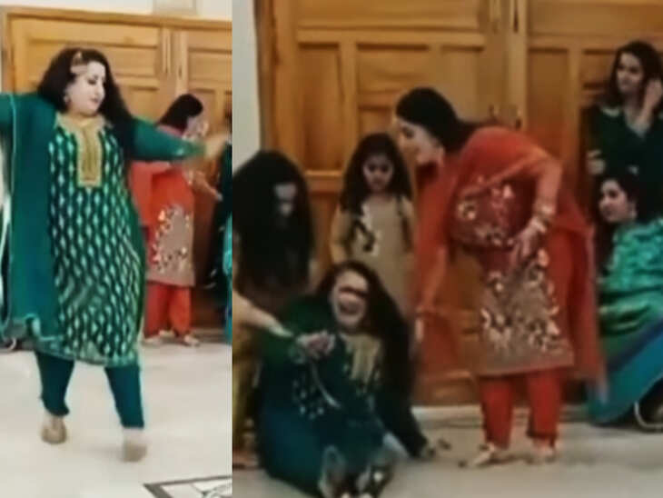 सलवार सूट वाली एक महिला "बोले चूड़ियां" गाने की लाइन "ले जा, ले जा..." पर डांस करती नजर आ रही है। आसपास अन्य महिलाएं भी बैठी हैं। अचानक सीढ़ियां चढ़ते समय वह पीछे खिसक जाता है, लेकिन संगमरमर का फर्श होने के कारण उसका पैर फिसल जाता है और वह ठोकर खाकर नीचे गिर जाता है। यह इतनी ताकत से गिरती है कि महिलाएं भी दंग रह जाती हैं और उनकी चीखें निकल जाती हैं। इसलिए कुछ महिलाएं भी इसे साथ ले जाती दिख रही हैं।