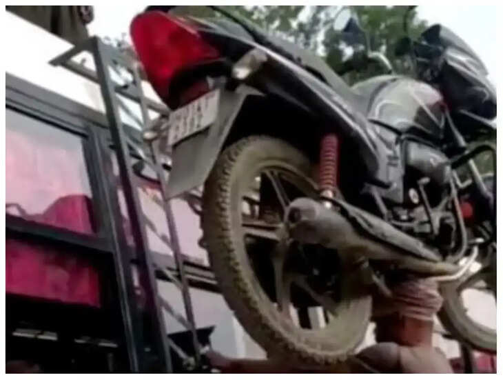 ये है असली बाहुबली! सिर पर मोटरसाइकिल रखकर बस में चढ़ा देता हैं बस पल भर में, वीडियो वायरल !