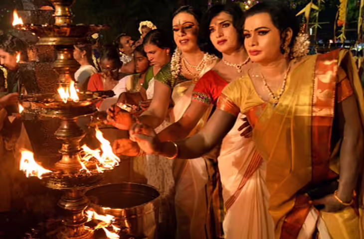 दरअसल, केरल में हर साल चामयाविलक्कू नाम का त्योहार मनाया जाता है। यह उत्सव कोल्लम में स्थित कोट्टनकुलंगरा श्री देवी मंदिर में आयोजित किया जाता है। यह त्यौहार मार्च के महीने में मनाया जाता है। यहां मार्च महीने में 10-12 दिनों तक चलने वाले इस त्योहार के आखिरी दिन पुरुष महिलाओं की तरह सजते हैं, साड़ी पहनते हैं, आभूषण पहनते हैं, मेकअप करते हैं, फूल लगाते हैं, अपनी दाढ़ी और मूंछें साफ करते हैं। इस तरह उन्हें महिलाओं की तरह कपड़े पहनाए जाते हैं.