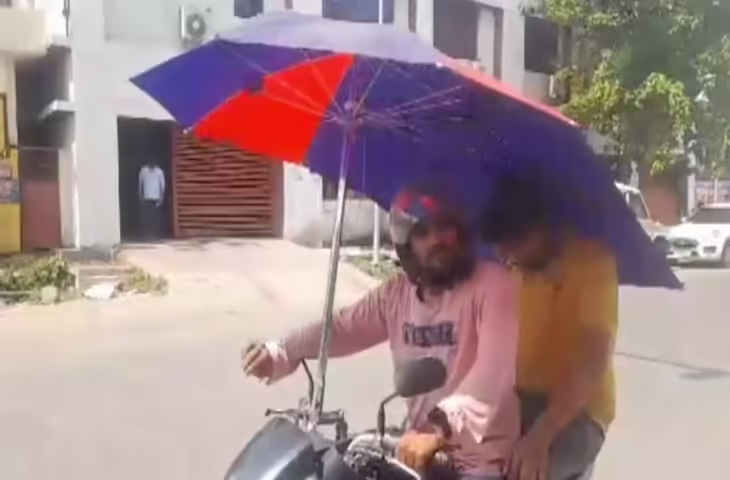 हमारे देश के लोग नकल करने और जुआ खेलने में चतुर माने जाते हैं। वे कठिन से कठिन कार्य को करने के लिए भी कोई न कोई तरकीब निकाल ही लेते हैं। इन दिनों भीषण गर्मी के कारण लोग घरों से कम निकल रहे हैं। इसी बीच सोशल मीडिया पर एक तस्वीर वायरल हो रही है, जिसे देखकर आपका दिमाग जरूर हिल जाएगा। क्योंकि इस तस्वीर में बाइक सवार ने धूप से बचने के लिए जो तरकीब अपनाई है, वो सबको हैरान कर देगी।