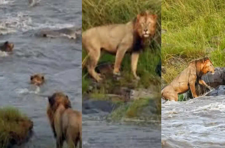 वीडियो में देखा जा सकता है कि झुंड में से एक शेर तैरकर नदी पार करता है और दूसरों को दिखाता है. इसके बाद दूसरा शेर पानी में चला जाता है और उफनती नदी में तैरने की कोशिश करता है. हालांकि इस दौरान उनकी पूरी कोशिश होती है कि उनके पार्टनर को हिम्मत मिले और वो भी नदी में उतरकर उसे पार कर लें और कुछ ऐसा ही हो जाता है. अंततः वह आराम से नदी पार कर जाता है। हालाँकि, अंत में केवल बब्बर शेर ही बचता है जो चालाकी दिखाता है और नदी पार नहीं करता है। इस वीडियो के कैप्शन के मुताबिक, यह वीडियो मसाई मारा नेशनल रिजर्व में रिकॉर्ड किया गया है.
