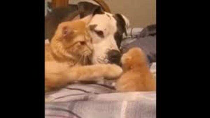 कुत्तों और बिल्लियों की दोस्ती को साबित करता एक वायरल वीडियो। जहां दोनों को अक्सर एक-दूसरे से लड़ते हुए देखा जाता है, वहीं इस वीडियो में एक बिल्ली अपने नवजात बच्चे को अपने डॉगी दोस्त से मिलवाती नजर आ रही है। इस बीच वे दोनों इस तरह देख रहे थे मानो बच्चे की मासूमियत और क्यूटनेस पर मोहित हो गए हों और उसे अकेले देखना चाहते हों। इसी दौरान एक कुत्ता और एक बिल्ली बच्ची को दुलारते नजर आए।