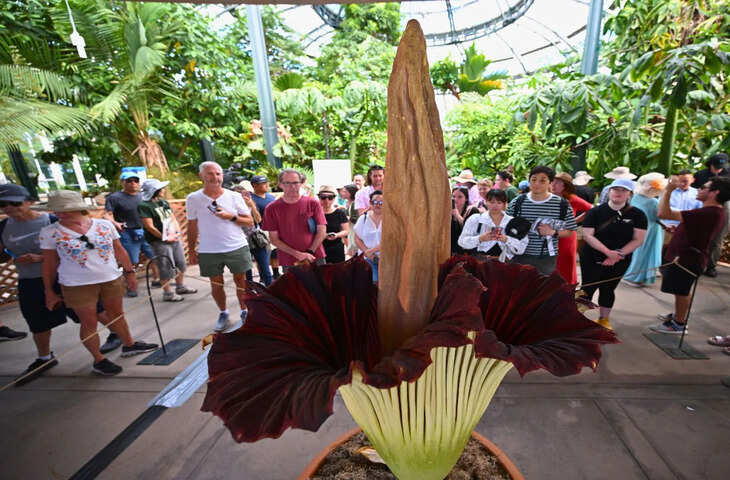 कोरोना काल में यह अमेरिका के सैन फ्रांसिस्को में भी खूब फला-फूला। कुछ साल पहले, यह उत्तरी स्विस शहर बेसल में भी उग आया था। वर्तमान में यह फूल कैलिफोर्निया के हंटिंगटन लाइब्रेरी बॉटनिकल गार्डन में खिलता है, जिसे देखने के लिए बड़ी संख्या में पर्यटक आते हैं। अमोर्फोफैलस टाइटेनम प्रजाति का यह फूल 2.43 मीटर लंबा होता है। हालाँकि, इसकी ऊँचाई 12 फीट तक हो सकती है। और इसे खिलने में लगभग 10 साल लगते हैं। इसी वजह से इस फूल को दुनिया के सबसे दुर्लभ फूलों में भी शामिल किया गया है।