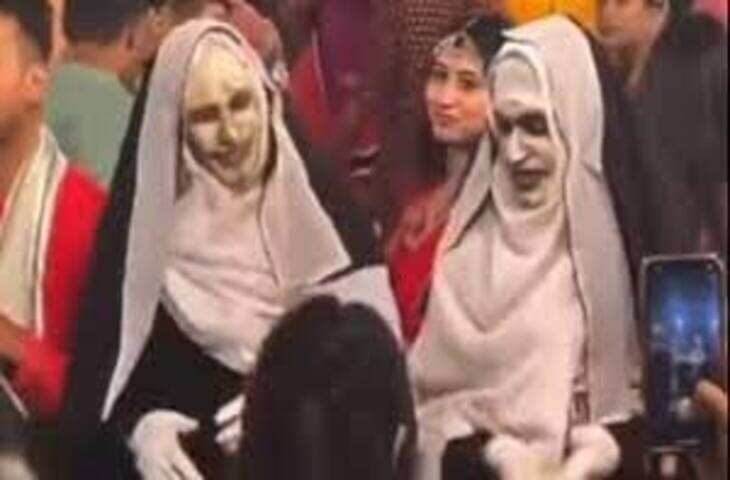 ट्विटर यूजर @salonivxrse ने हाल ही में एक वीडियो पोस्ट किया है जो वायरल (हैलोवीन गरबा वीडियो) हो रहा है। इस वीडियो में दो लोग गरबा कर रहे हैं, लेकिन वो भूत जैसे लग रहे हैं. कुछ साल पहले एक हॉलीवुड फिल्म आई थी जिसका नाम था 'द नन'। इस फिल्म में डायन को नन के वेश में रखा गया था. इस वीडियो में भी लोग एक जैसे कपड़े पहने नजर आ रहे हैं.