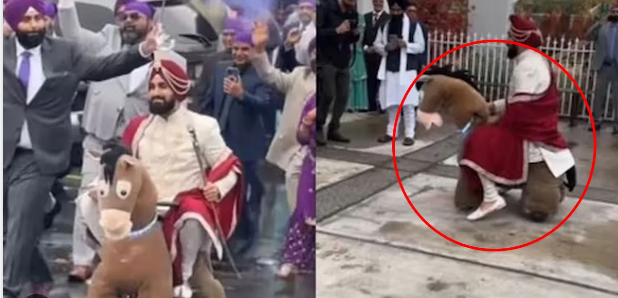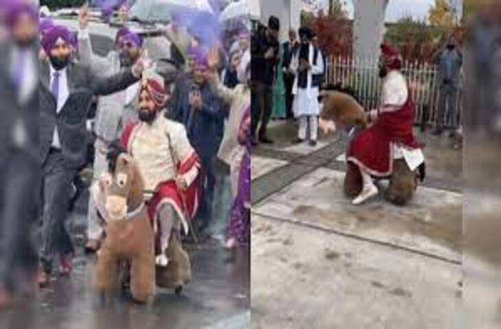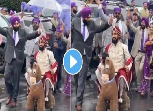इंस्टाग्राम अकाउंट @imjustbesti अक्सर विचित्र वीडियो पोस्ट करता है। हाल ही में इस अकाउंट पर एक वीडियो शेयर किया गया था जिसमें एक दूल्हा खिलौने के घोड़े पर बैठकर बारात लेकर जा रहा है. वह एक सिख व्यक्ति है और उसके साथी भी सिख हैं, इससे पता चलता है कि बारात सिखों की है. मजेदार बात यह है कि दूल्हा एक खिलौने वाले घोड़े पर चलता नजर आ रहा है।