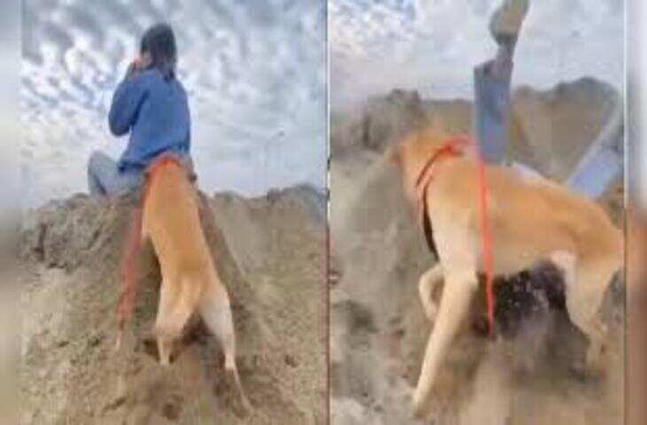 क्योंकि, कुत्ता अपने पैरों से उसी रेत के ढेर में खुदाई करने लगा जिस पर लड़की बैठी थी. लड़की इस बात से बिल्कुल अंजान थी कि वह कुछ ही सेकंड में गिरने वाली है। जब युवक आराम से बैठकर फोन पर बात कर रहा था, तभी कुत्ते ने अपने पंजे से रेत का ढेर खोद डाला और लड़की अचानक रेत के ढेर से नीचे गिर गई. कुत्ते के इस व्यवहार ने बाद में लड़की को खूब हंसाया होगा.