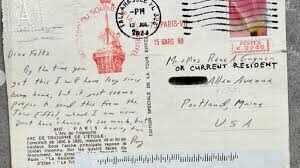 53 साल पहले भेजे गए एक पोस्टकार्ड पर टालहासी, फ्लोरिडा का 12 जुलाई, 2023 का नया पोस्टमार्क है। महिला ने लिखा: "यह जानबूझकर एक पूर्व या वर्तमान निवासी को संबोधित किया या था और एक नए डाक टिकट का जानबूझकर इस्तेमाल किया गया था, तो यह पेरिस से तल्हासी से मेन तक कैसे पहुंचा?"
