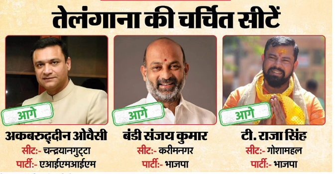 | गोशामहल | टी. राजा सिंह | भाजपा | आगे |