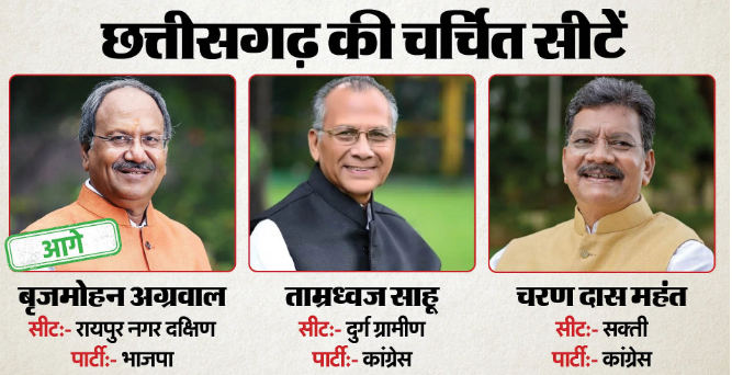 | रायपुर नगर दक्षिण | बृजमोहन अग्रवाल | भाजपा | आगे |