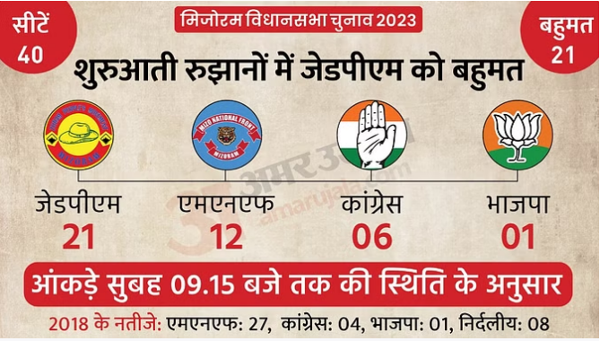 Mizoram Election Result Live रूझानों में ZPM को भारी बहुमत, सत्ताधारी MNF पीछे, जानें कांग्रेस-भाजपा को कितनी मिली सीटें