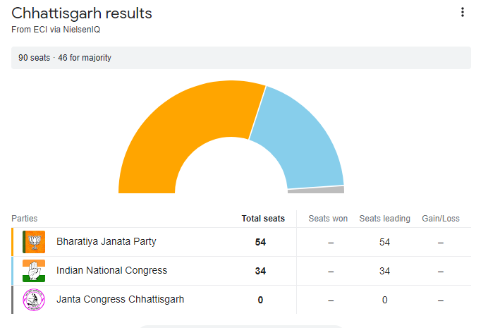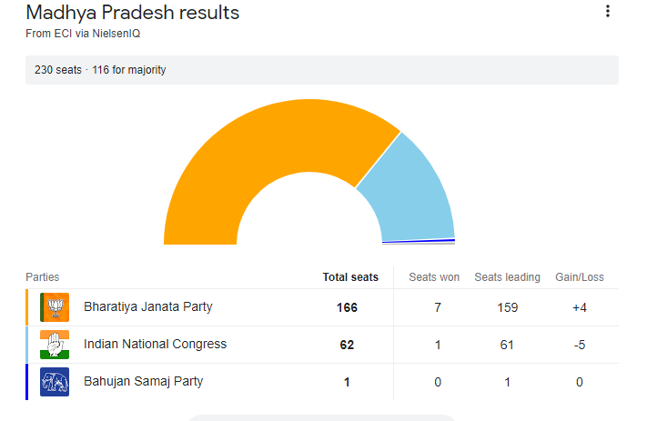 मध्य प्रदेश, राजस्थान, छत्तीसगढ़ और तेलंगाना विधानसभा चुनाव के नतीजे आज आएंगे। मतदान के रुझानों में मध्य प्रदेश और राजस्थान में बीजेपी को कांग्रेस पर बढ़त मिलती दिख रही है. वहीं रुझानों के मुताबिक कांग्रेस पार्टी को पहली बार तेलंगाना में बहुमत मिलता दिख रहा है. छत्तीसगढ़ में बीजेपी और कांग्रेस के बीच कांटेदार टक्कर देखने को मिल रही है.