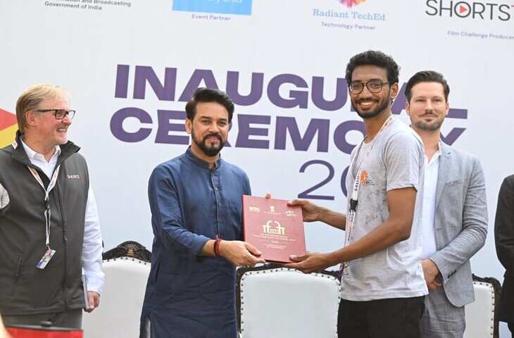 मंच पर जहां अनुराग ठाकुर ने नई फिल्म नीति के कई महत्वपूर्ण पहलुओं को साझा किया, वहीं उन्होंने 75 क्रिएटिव माइंड्स ऑफ टुमॉरो (सीएमओटी) प्रतिभागियों को प्रमाण पत्र देकर विजेताओं के लिए 48 घंटे की फिल्म चैलेंज की शुरुआत की। इस दौरान उन्होंने कहा कि भारत सरकार फिल्म उद्योग में रचनात्मकता लाने, रोजगार के नए अवसर पैदा करने, अर्थव्यवस्था को बढ़ावा देने और उत्कृष्ट कलाकारों को संरक्षण देने के लिए पूरी तरह प्रतिबद्ध है।