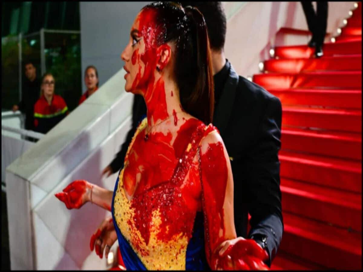 नीली हील्स के साथ पीले और नीले रंग की ड्रेस पहने महिला ने पहले रेड कार्पेट पर अपनी ड्रेस दिखाई और फिर कैमरे को देखकर मुस्कुराई। इसके बाद किसी को सोचने का मौका नहीं दिया गया और उसके सिर से खून बहने लगा। यह सब देखकर पास खड़े सुरक्षाकर्मियों ने तुरंत उन्हें सीढ़ियों से नीचे उतारा और कार्यक्रम से बाहर कर दिया.