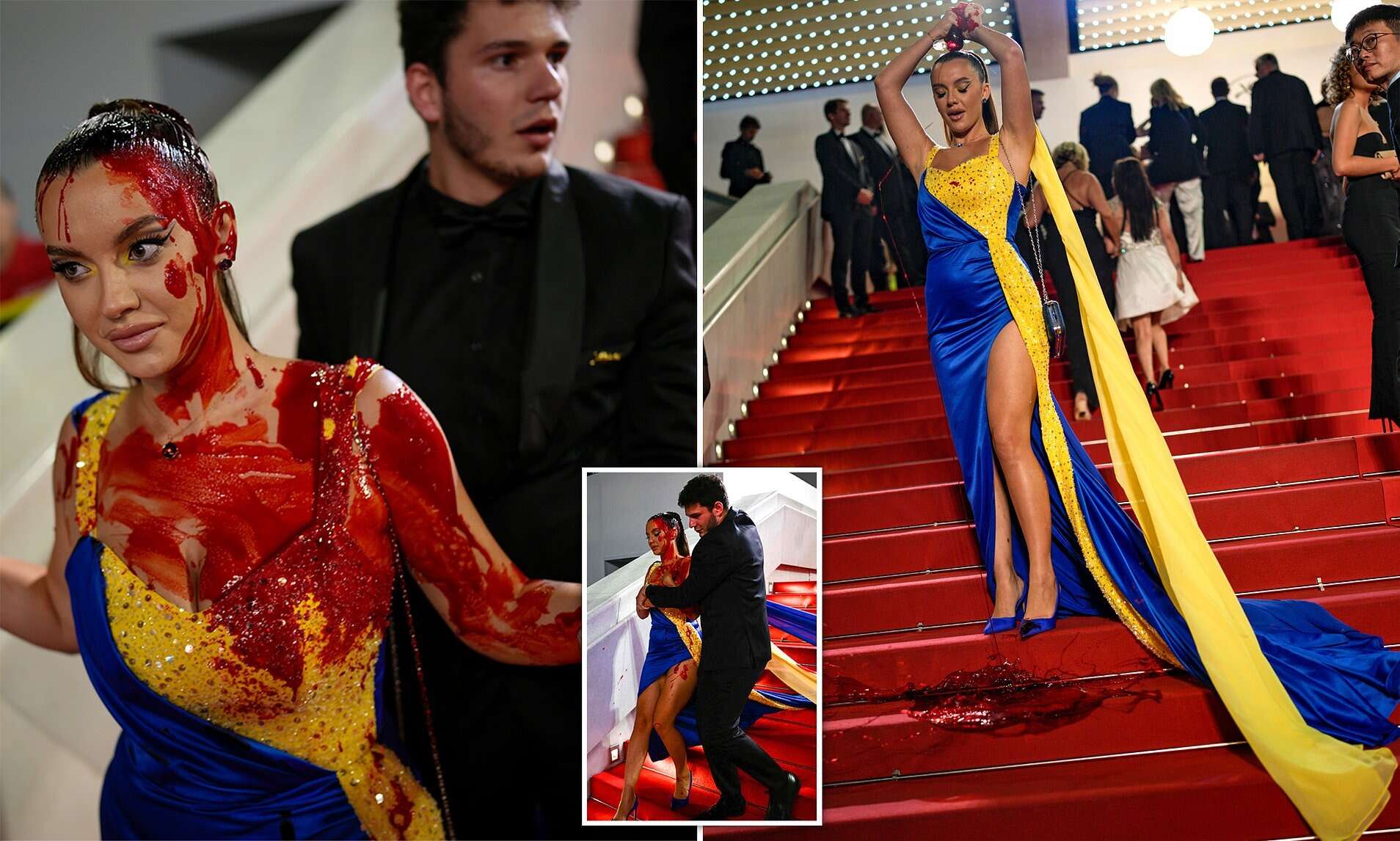 मनोरंजन न्यूज़ डेस्क, कान्स 2023 फिल्म असाइड की स्क्रीनिंग के दौरान पलैस डेस फेस्टिवल की सीढ़ियों पर यूक्रेनी रंग के कपड़े पहने एक महिला ने खुद पर नकली खून छिड़का। वीडियो सोशल मीडिया पर वायरल हो गया है। यूक्रेन के झंडे के रंग में रंगी एक महिला ने रविवार को 76वें कान फिल्म फेस्टिवल के रेड कार्पेट पर विरोध प्रदर्शन किया। सुरक्षा कर्मचारियों द्वारा हटाए जाने से पहले, फ्रांसीसी फिल्म निर्देशक जस्ट फिलिप की फिल्म 'असाइड' की स्क्रीनिंग के दौरान पैलेस डेस फेस्टिवल की सीढ़ियों पर विरोध करती एक महिला ने खुद पर नकली खून डाला।