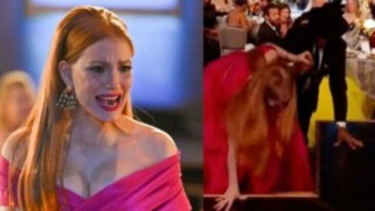 वहीं इसी बीच एक वीडियो भी सामने आया है जो सबसे ज्यादा वायरल हो रहा है. ये है एक्ट्रेस जेसिका का वीडियो जो स्टेज पर पहुंचते ही लड़खड़ाकर गिर पड़ीं. इस समारोह में पुरस्कार के लिए अभिनेत्री जेसिका चैस्टेन के नाम की भी घोषणा की गई।