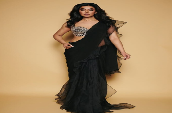सुष्मिता सेन ने अपने इंस्टाग्राम पर कई फोटोज शेयर की हैं, जिसमें उन्होंने स्टाइलिश काले रंग की साड़ी पहनी हुई है। यह साड़ी हल्की और फ्लोई फ़ैब्रिक से बनी हुई है। इसके बॉर्डर पर रफल डिजाइन है, जो लुक को स्टाइलिश और सुंदर बना रहा है। सुष्मिता हमेशा की तरह आत्मविश्वास से लबरेज नजर आ रही हैं।