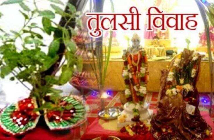 आपको बता दें कि तुलसी विवाह की पूजा के लिए सबसे पहले पूजा की चौकी, शालीग्राम जी, तुलसी का पौधा, भगवान विष्णु की प्रतिमा या तस्वीर, गन्ना, मूली, कलश, नारियल, कपूर, आंवला, बेर, मौसमी फल, शकरकंद, सिंघाड़ा, सीताफल, गंगाजल, अमरूद, दीपक, धूप, पुष्प, चंदन, रोली, मौली, सिंदूर, लाल चुनरी, हल्दी की गांठ, बताशा, मिठाई, सुहाग का सामान, जैसे बिंदी, चूड़ी, मेहंदी, साड़ी, बिछिया आदि शामिल कर सकते हैं।