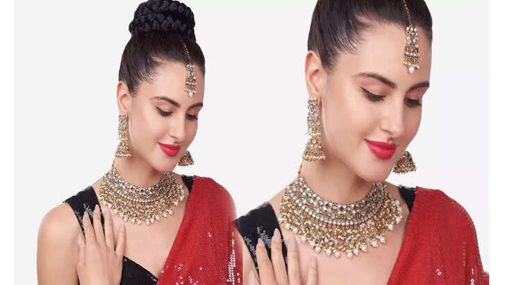 Kudan का यह चोकर सेट हर तरह के एथनिक वियर के साथ अच्छा लगता है। ऐसे ज्वेलरी सेट आपको बाजार से 400 से 1000 तक मिल जाते हैं। इसे हैवी लहंगे के साथ कैरी करना बेहतर रहेगा।