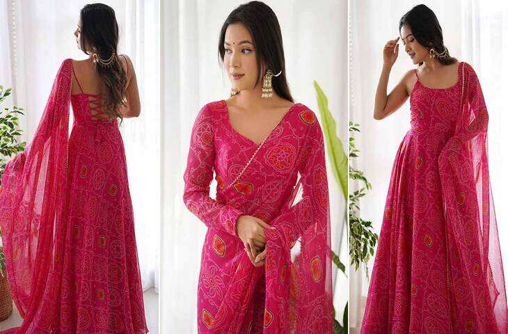 अगर आपके पास बंधेज साड़ी पड़ी है और आप उसे पहन नहीं पा रही हैं, और आपको सूट पहनना पसंद है, तो आप डिज़ाइनर सूट बनवा सकती हैं।