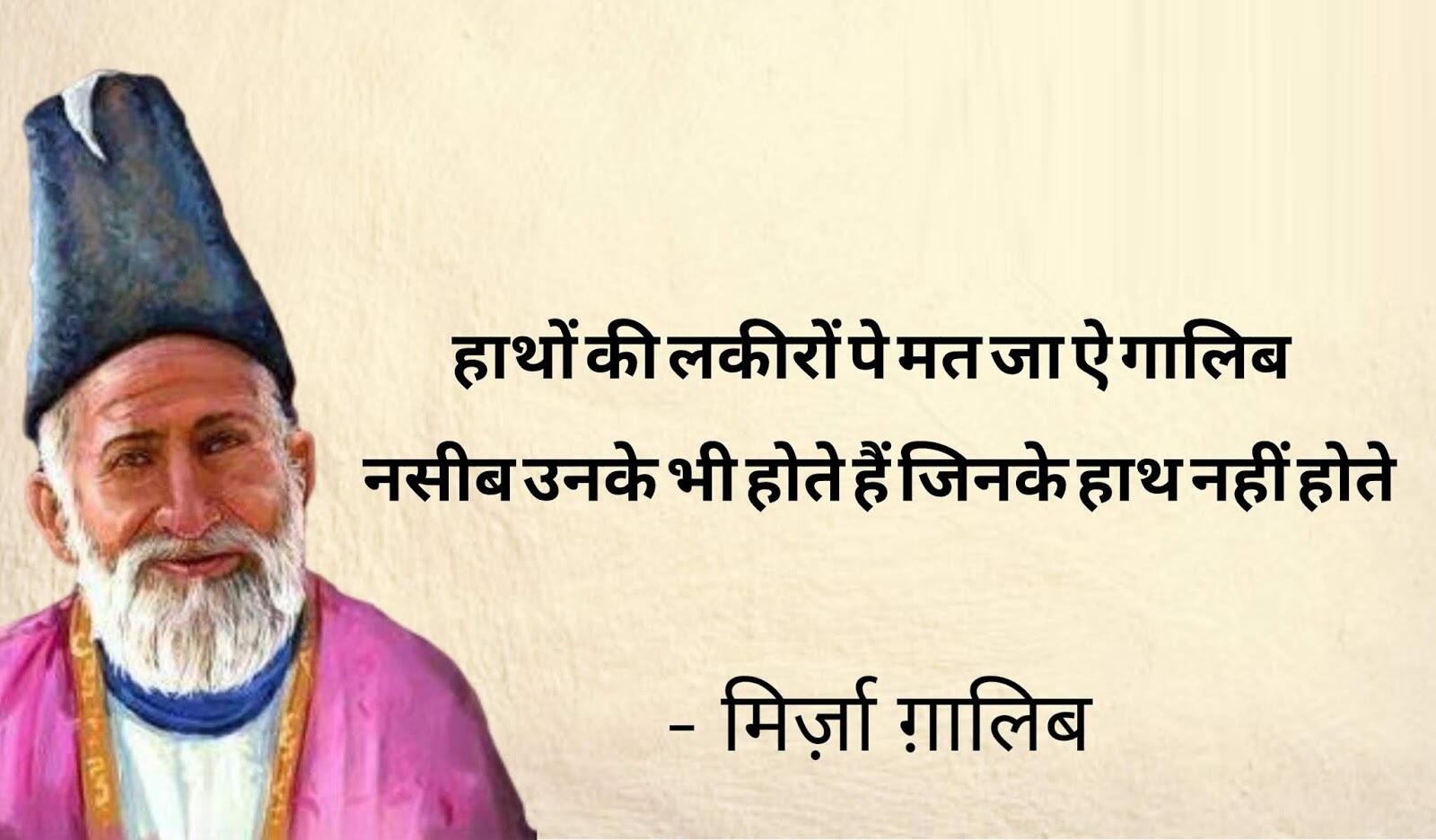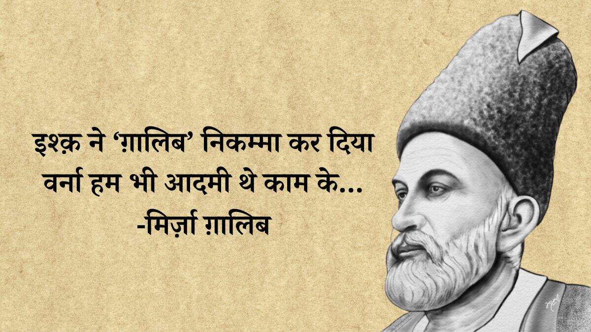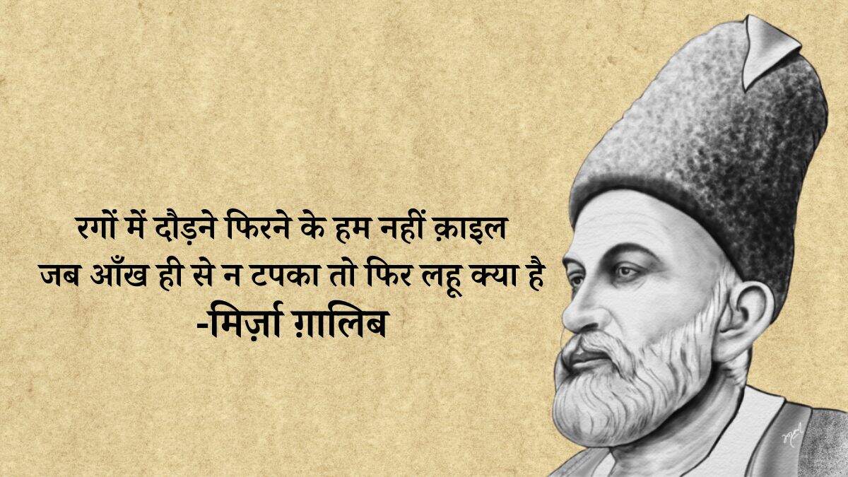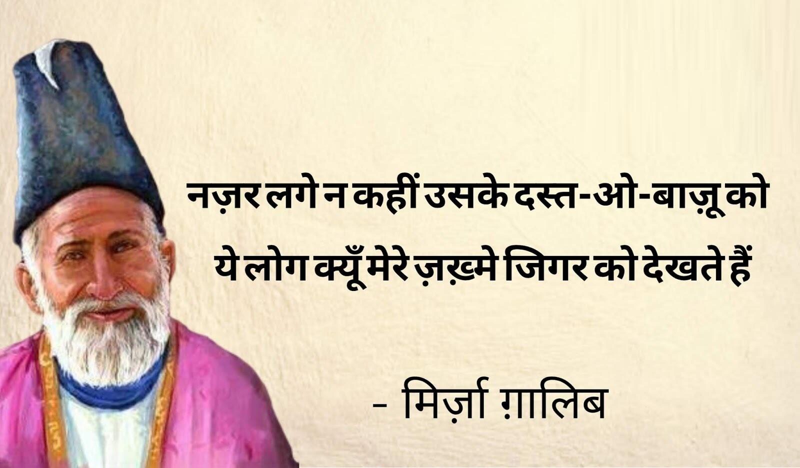 LiteratureMirza Ghalib Shayari: किसी भी महफिल को जमा देंगी मिर्ज़ा ग़ालिब की ये शायरियांBy Yashaswi GargTue, 19 Sep 2023 /1हुई मुद्दत कि 'ग़ालिब' मर गया पर याद आता है, वो हर इक बात पर कहना कि यूँ होता तो क्या होता !-मिर्जा गालिब /1हैं और भी दुनिया में सुखनवर बहुत अच्छे, कहते हैं कि ग़ालिब का है अन्दाज़े-बयां और-मिर्जा गालिब /1न था कुछ तो ख़ुदा था, कुछ न होता तो ख़ुदा होता, डुबोया मुझको होने ने न मैं होता तो क्या होता !-मिर्जा गालिब /1उनको देखे से जो आ जाती है मुंह पर रौनक, वो समझते हैं के बीमार का हाल अच्छा है-मिर्जा गालिब /1हज़ारों ख़्वाहिशें ऐसी कि हर ख़्वाहिश पर दम निकले बहुत निकले मेरे अरमान लेकिन फिर भी कम निकले-मिर्जा गालिब /1रगों में दौड़ने फिरने के हम नहीं क़ाइल जब आँख ही से न टपका तो फिर लहू क्या है-मिर्जा गालिब /1हम को मालूम है जन्नत की हक़ीक़त लेकिन दिल के ख़ुश रखने को 'ग़ालिब' ये ख़याल अच्छा है-मिर्जा गालिब /1इश्क़ ने ‘ग़ालिब’ निकम्मा कर दिया वर्ना हम भी आदमी थे काम के-मिर्जा गालिब /1हाथों की लकीरों पे मत जा ऐ गालिब, नसीब उनके भी होते हैं जिनके हाथ नहीं होते-मिर्जा गालिब /1नज़र लगे न कहीं उसके दस्त-ओ-बाज़ू को, ये लोग क्यूँ मेरे ज़ख़्मे जिगर को देखते हैं-मिर्जा गालिब Share this storyPost a Comment