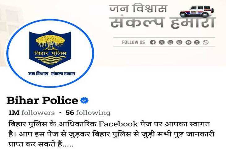 पटना। राज्य में कानून-व्यवस्था को और सुदृढ़ बनाने के लिए बिहार पुलिस लगातार काम कर रही है। अपने बेहतर काम की बदौलत बिहार पुलिस हर फ्रंट पर लोगों का भरोसा जीत रही है। सोशल मीडिया प्लेटफ़ॉर्म के जरिए लोगों को लगातार जागरूक किया जाता है, ताकि कोई भी साइबर फ्रॉड के चंगुल में न फंसे। आमलोगों के बीच बिहार पुलिस की विश्वसनीयता का ही परिणाम है कि फेसबुक पर 1 मिलियन फॉलोवर्स हो गए हैं। इस भरोसे के दम पर बिहार पुलिस का फेसबुक पेज अब 10 लाख लोगों का परिवार बन गया है। यही नहीं, अगर बाकी सोशल मीडिया प्लेटफ़ॉर्म को मिला दें, तो 17 लाख से ज्यादा लोग बिहार पुलिस के पेज को फॉलो करते हैं। फेसबुक पर बिहार पुलिस देश के अन्य राज्यों की पुलिस से काफी आगे दूसरे नंबर पर पहुंच गई है, प्रथम स्थान पर सिर्फ केरला पुलिस है। सोशल मीडिया के विभिन्न प्लेटफ़ॉर्म पर कुल फॉलोवर्स की संख्या के मामले में बिहार पुलिस अब चौथे नंबर पर पहुंच चुकी है। कुल फॉलोवर्स के मामले में बिहार पुलिस से आगे अब सिर्फ उत्तर प्रदेश, केरला और महाराष्ट्र पुलिस है।