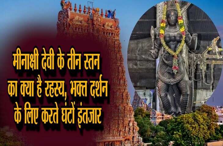 मीनाक्षी देवी मंदिर पूरे भारत में विशेष माना जाता है। इस मंदिर को दुनिया के 7 अजूबों की सूची में भी शामिल किया गया था। मीनाक्षी देवी मंदिर तमिलनाडु के मदुरै शहर में स्थित एक ऐतिहासिक मंदिर है, जिसे देखने के लिए लोग न केवल भारत से, बल्कि दूर-दूर से भी आते हैं और मंदिर में दर्शन के लिए घंटों इंतज़ार करते हैं। मीनाक्षी देवी को पार्वती का अवतार माना जाता है। मीनाक्षी देवी मंदिर 2500 साल पुराना है। मंदिर की भव्य संरचना के अलावा, मंदिर में स्थित मीनाक्षी देवी की मूर्ति भी लोगों के लिए बेहद रहस्यमयी है क्योंकि मीनाक्षी देवी की मूर्ति के तीन स्तन हैं। आइए, जानते हैं कि मीनाक्षी देवी मंदिर और इस देवी के तीन स्तन होने के पीछे क्या रहस्य है।