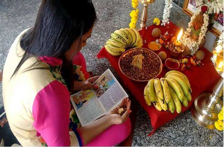 विधि-विधान से कलश की स्थापना करें और माता संतोषी की पूजा शुरू करें। पूजा के दौरान मां को फूल, माला, सिंदूर, अक्षत आदि अर्पित करें। प्रसाद के तौर पर आप देवी को भीगी हुई चने की दाल, गुड़ और केला चढ़ा सकते हैं। मां संतोषी के सामने घी का दीपक जलाएं और भक्ति भाव से देवी की आरती और मंत्रों का जाप करें। इसके बाद सभी लोगों में प्रसाद बांटें और कलश का जल पूरे घर में छिड़कें।