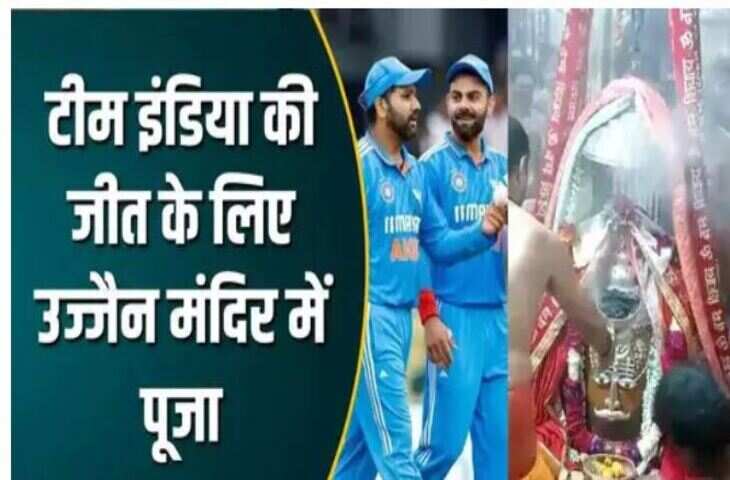 उज्जैन के महाकाल मंदिर में भारतीय टीम की जीत के लिए विशेष आरती की गई है।महाकाल के दरबार में टीम इंडिया की जीत के लिए रविवार सुबह भस्म आरती हुई है। इस दौरान दूध, दही, घी, शहद, फलों के रस से बने पंचामृत से अभिषेक पूजन किया गया।भक्तों ने बाबा महाकाल के सामने टीम इंडिया की जीत की प्रार्थना की। बता दें कि भारत और ऑस्ट्रेलिया के बीच मुकाबला दोपहर 2 बजे से खेला जाएगा, जबकि मैच में टॉस करीब 1.30 बजे हो जाएगा।