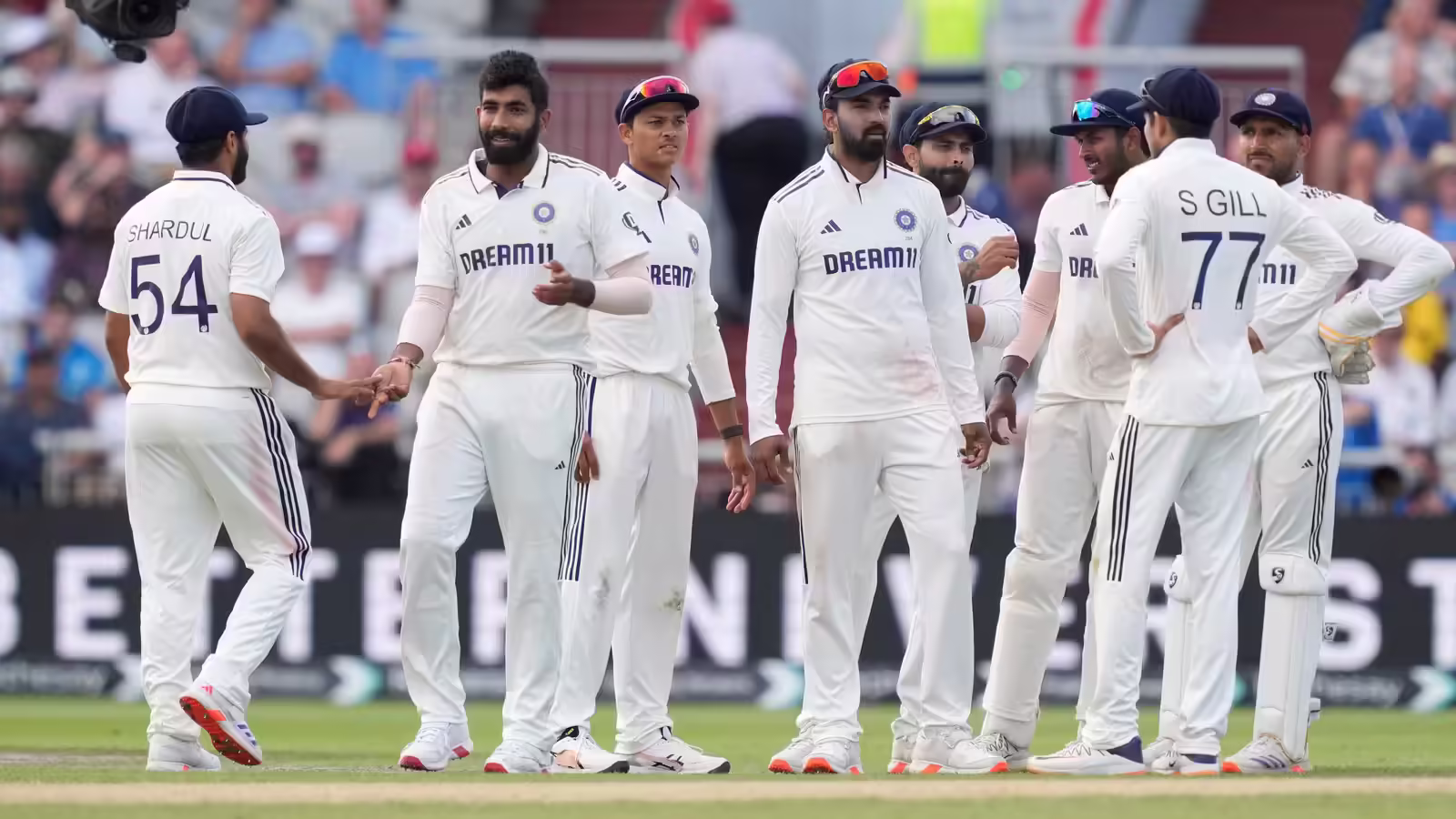 बुमराह ने दिन के पहले ओवर में सिर्फ़ एक रन दिया। चौथी गेंद पर बेन स्टोक्स ने मिड-ऑन की ओर शॉट खेलकर एक रन लिया। स्टोक्स 78 रन और लियाम डॉसन 21 रन बनाकर क्रीज़ पर हैं।