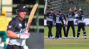 जिम्बाब्वे में खेली जा रही त्रिकोणीय टी20 सीरीज में न्यूजीलैंड ने दक्षिण अफ्रीका को 25 गेंद शेष रहते 7 विकेट से हरा दिया। न्यूजीलैंड को जीत के लिए 135 रन चाहिए थे। न्यूजीलैंड के कप्तान सैंटनर ने टॉस जीतकर पहले गेंदबाजी करने का फैसला किया। कीवी गेंदबाजों ने दक्षिण अफ्रीका की मजबूत बल्लेबाजी को 20 ओवर में 8 विकेट पर 134 रनों पर रोक दिया। दक्षिण अफ्रीका के लिए रीजा हेंड्रिक्स ने 41 रन बनाए। वहीं, जॉर्ज लिंडे 23 रन बनाकर दूसरे शीर्ष स्कोरर रहे। कीवी टीम के लिए जैकब डफी, एडम मिल्ने और मिशेल सैंटनर ने 2-2 विकेट लिए, जबकि विल ओ'रुरके को एक सफलता मिली।