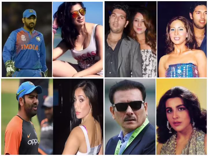 टीम इंडिया के सबसे हैंडसम क्रिकेटरों में से एक युवराज सिंह की फीमेल फैन फॉलोइंग बहुत ज्यादा है। अब युवराज सिंह ने भले ही एक्ट्रेस हेजल कीच से शादी कर ली हो, लेकिन एक समय उनका नाम एक्ट्रेस किम शर्मा से जुड़ा था। दोनों के रिलेशनशिप को लेकर मीडिया में कई खबरें आई थीं। टीम इंडिया के हेड कोच रवि शास्त्री का नाम भी एक समय अमृता सिंह से जुड़ा था। कहा जाता है कि दोनों ने कैमरे के सामने अपने रिश्ते को स्वीकार किया था, लेकिन ये रिश्ता नाकाम रहा और 1990 में रवि शास्त्री ने रितु सिंह से और अमृता सिंह ने एक्टर सैफ अली खान से शादी कर ली। इस लिस्ट में सबसे पहला नाम महेंद्र सिंह धोनी का है। मीडिया रिपोर्ट्स की मानें तो एक समय धोनी तमिल एक्ट्रेस और मॉडल लक्ष्मी राय को डेट कर रहे थे। खबरों के मुताबिक दोनों के बीच अफेयर था लेकिन फिर इनका ब्रेकअप हो गया।