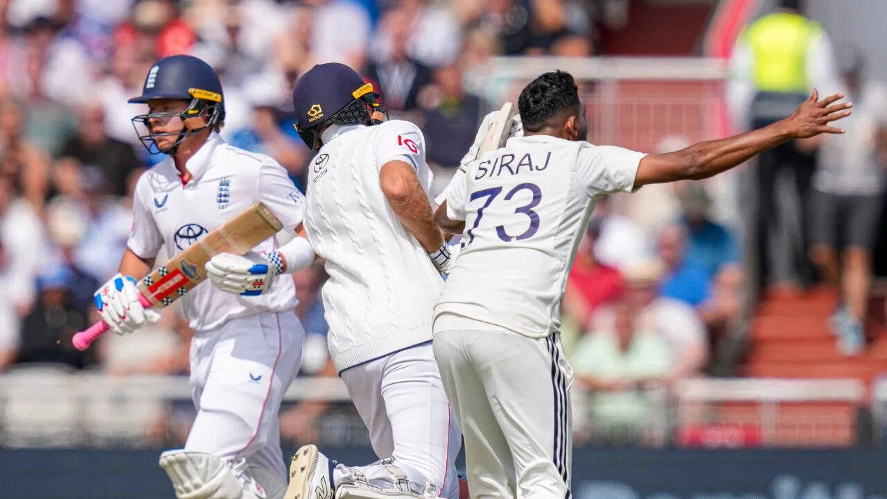 टीम इंडिया के स्टार तेज़ गेंदबाज़ मोहम्मद सिराज का इंग्लैंड दौरा उतार-चढ़ाव से भरा रहा है। कभी वह बदकिस्मत रहे, कभी उन्होंने शानदार गेंदबाज़ी की और कई बार उनकी गेंदबाज़ी देखकर यह अंदाज़ा लगाना मुश्किल था कि उन्होंने लगभग 40 टेस्ट मैच खेले हैं। लेकिन एक मौके पर सिराज ने निरंतरता बनाए रखी और यह उनका हरफनमौला प्रदर्शन था। अपनी पूरी ताकत लगाने और आक्रामकता बनाए रखने के चक्कर में, उनकी इंग्लैंड के बल्लेबाज़ों से टक्कर और झड़प भी हुई। ऐसी ही एक टक्कर की वजह से सिराज एक बड़ी हार से बच गए।