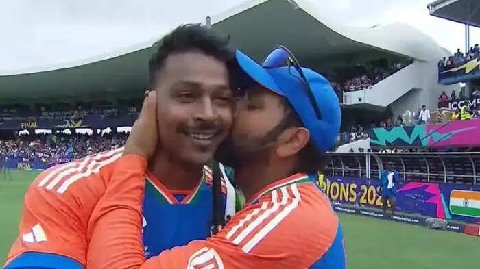 क्रिकेट न्यूज डेस्क।। रोहित शर्मा की कप्तानी में भारत ने करीब एक साल पहले टी20 वर्ल्ड कप 2024 का खिताब जीता था। फाइनल में भारत ने रोमांचक मुकाबले में साउथ अफ्रीका को 7 रन से हराया था। भारतीय टीम ने टॉस जीतकर पहले बल्लेबाजी करने का फैसला किया और साउथ अफ्रीका को 177 रनों का लक्ष्य दिया, जिसका पीछा करते हुए अफ्रीकी टीम 169 रन ही बना सकी। खिताबी मुकाबले को जीतने में भारत के स्टार ऑलराउंडर हार्दिक पांड्या ने अहम भूमिका निभाई थी। पांड्या ने अपनी शानदार गेंदबाजी से टीम इंडिया को मैच जिताया था। मैच जीतने के बाद रोहित शर्मा ने बीच मैदान में हार्दिक पांड्या को किस किया था। वहीं, अब रोहित ने इसके पीछे का राज बताया है।