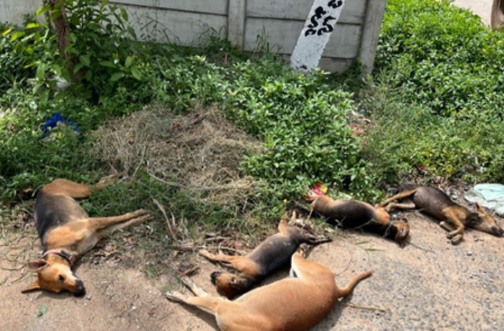 ज्योतिष ने बताया कि उनके इलाके में कुछ अज्ञात लोगों ने चावल में जहर मिलाकर कुत्तों को खिला दिया, जिससे पांच कुत्ते मर गए, दो गंभीर हैं और दो पालतू कुत्तों की भी मौत हो गई।