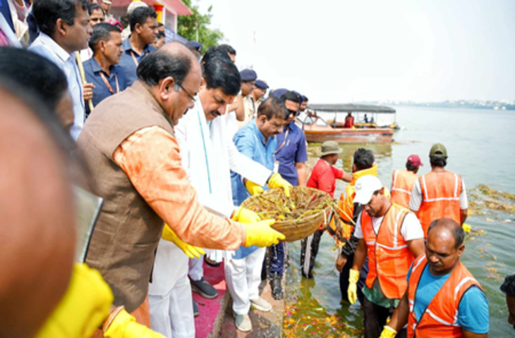 भोपाल में मोहन यादव ने शीतल दास की बगिया के घाट की सफाई