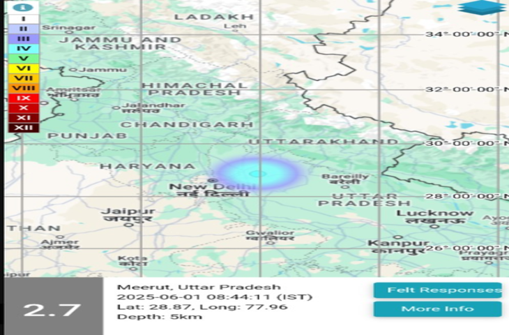 मेरठ में भूकंप के झटके, रिक्टर स्केल पर 2.7 रही तीव्रता