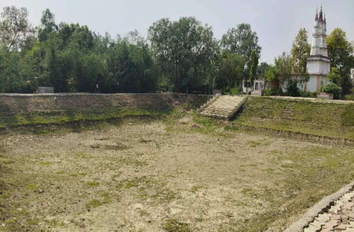 ओझाबरांव गांव में शिव मंदिर तालाब का हाल बेहाल, लाखों की लागत फिर भी उड़ रही धूल