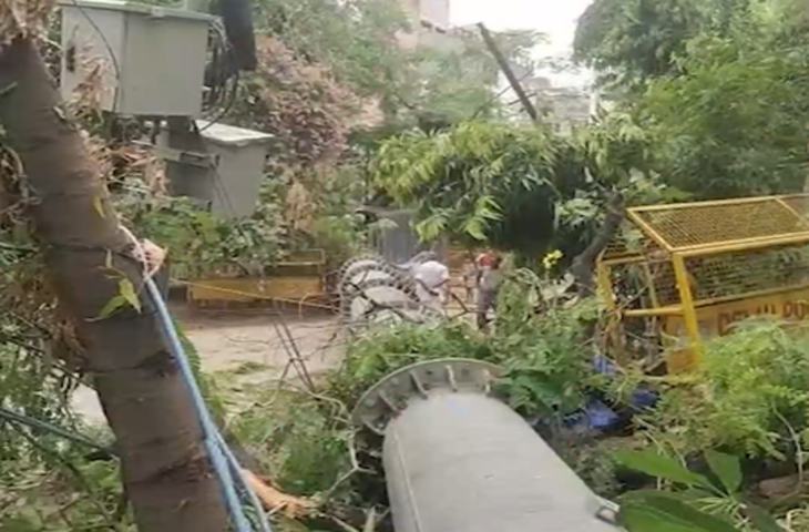 दिल्ली: आंधी में धराशायी हुआ 100 फीट लंबा मोबाइल टावर, स्थानीय लोग नाराज