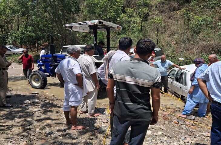 कांगड़ा-ऊना सीमा पर राजपुर जसवां पंचायत के मसलाना गांव में निर्माणाधीन पुल के पास तटबंध में अचानक दरार आने से रविवार को दर्जनों वाहन बुरी तरह क्षतिग्रस्त हो गए। सौभाग्य से, किसी के हताहत होने या घायल होने की सूचना नहीं है। स्थानीय सूत्रों के अनुसार, राजपुर जसवां-घाघोह संपर्क मार्ग पर एक पुलिया पर निर्माण कार्य चल रहा था। शनिवार शाम को भारी बारिश के कारण निर्माण स्थल के पास भारी मात्रा में बारिश का पानी जमा हो गया, जिससे एक अस्थायी जल निकाय बन गया। रविवार को गांव की कुलदेवी को समर्पित एक स्थानीय मंदिर में धार्मिक आयोजन में आसपास के क्षेत्रों से बड़ी संख्या में श्रद्धालु शामिल हुए। कई उपस्थित लोगों ने तटबंध के पास अपने निजी वाहन पार्क किए, जिसके पास पानी जमा था। अचानक तटबंध टूट गया और पानी खड़ी गाड़ियों की ओर बढ़ गया। कई मोटरसाइकिलें बह गईं, जबकि तेज पानी के बहाव में कारें एक-दूसरे से टकरा गईं, जिससे काफी नुकसान हुआ। इस घटना से भीड़ में अफरा-तफरी मच गई और लोग अपने वाहनों को बचाने के लिए दौड़ पड़े। बाद में क्रेन और ट्रैक्टर की मदद से कई वाहनों को निकाला गया। कुछ वाहन पानी के दबाव में 100 मीटर से ज़्यादा दूर बह गए, जबकि कुछ कीचड़ में फंस गए।