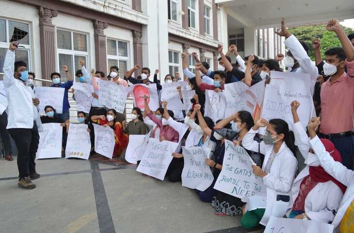 मणिपुर : परीक्षा में शामिल होने से रोके जाने के बाद एमबीबीएस छात्रों ने किया विरोध प्रदर्शन