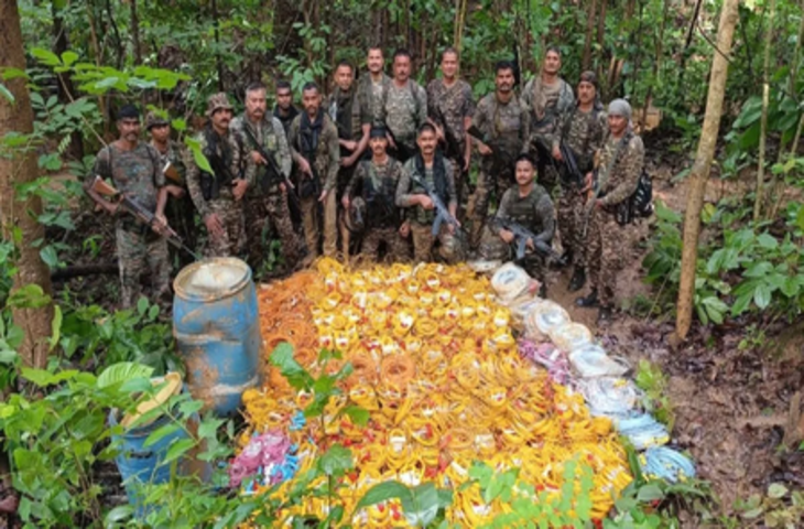 झारखंड के पश्चिमी सिंहभूम के जंगलों में नक्सलियों के ठिकाने से 18 हजार डेटोनेटर बरामद