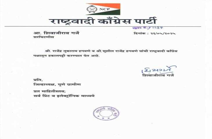 राष्ट्रवादी कांग्रेस पार्टी (एनसीपी-अजित पवार गुट) के नेता राजेंद्र हगावने की बहू की कथित दहेज हत्या को लेकर उठे राजनीतिक विवाद के बाद एनसीपी ने गुरुवार (22 मई, 2025) को राजेंद्र हगावने और उनके बेटे सुशील हगावने को पार्टी से निष्कासित कर दिया। इस बीच, पुलिस ने फरार राजेंद्र और सुशील हगावने की तलाश और उन्हें पकड़ने के लिए चार टीमें बनाई हैं और तीनों गिरफ्तार आरोपियों को 26 मई तक पुलिस हिरासत में ले लिया है।