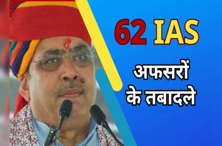 राजस्थान में बड़ा प्रशासनिक फेरबदल: भजनलाल सरकार ने 62 IAS अधिकारियों के किए तबादले, 21 को अतिरिक्त प्रभार