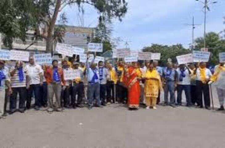 वित्त विधेयक 2025 में पेंशन संशोधन के खिलाफ केंद्र सरकार के खिलाफ पेंशनर एसोसिएशन ने शुक्रवार को एक जोरदार प्रदर्शन किया। यह प्रदर्शन कलेक्ट्रेट के बाहर आयोजित किया गया, जहां रिटायर्ड कर्मचारी हाथों में तख्तियां लेकर सरकार के खिलाफ विरोध जताते हुए मानव श्रृंखला बनाए खड़े हुए। पेंशनर्स ने अपनी मांगों को लेकर स्पष्ट रूप से नाराजगी जाहिर की और भविष्य में कोई समाधान न होने पर आंदोलन की चेतावनी भी दी।