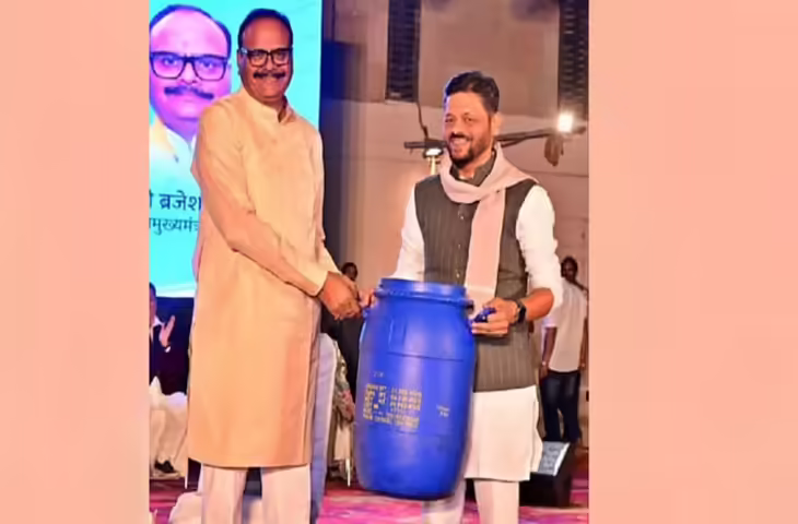डिप्टी सीएम को गिफ्ट में मिला नीला ड्रम, बोले- यह बहुत काम का है बस उल्टा मत सोचो
