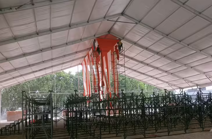 वाराणसी के मेहंदीगंज में प्रधानमंत्री नरेंद्र मोदी की जनसभा स्थल पर मंच और पंडाल अब आकार लेने लगे हैं। इसके साथ ही जनसभा स्थल पर एसीपी राजातालाब के नेतृत्व में फोर्स तैनात कर दी गई है। वहीं, सुरक्षा व्यवस्था को ध्यान में रखते हुए पुलिस मेहंदीगंज, नागपुर, रखौना व आसपास के गांवों में रहने वालों की चेकिंग कर रही है। ताकि कोई भी अवांछित तत्व गांवों में प्रवेश न कर सके।