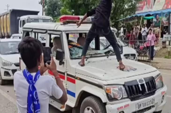 यूपी के प्रयागराज में जबरदस्त बवाल हुआ है. उपद्रवियों की भीड़ प्रयागराज की सड़कों पर 2 घंटे तक खुलेआम उत्पात मचाती रही. गुस्साई भीड़ ने पुलिस की गाड़ियों पर हमला किया, पथराव किया और डायल 112 की गाड़ी को पलट दिया. उपद्रवियों ने पुलिस टीम पर भी पथराव किया. रोडवेज की बसों में तोड़फोड़ की गई और कई बाइक फूंक दी गईं. ये सारा बवाल प्रयागराज में भीम आर्मी प्रमुख और सांसद चंद्रशेखर आजाद के समर्थकों ने किया है. चंद्रशेखर आजाद कौशांबी जाना चाहते थे लेकिन पुलिस ने उन्हें प्रयागराज में ही रोक लिया. इसके बाद भीम आर्मी के कार्यकर्ता भड़क गए और करछना में जमकर उत्पात मचाया.