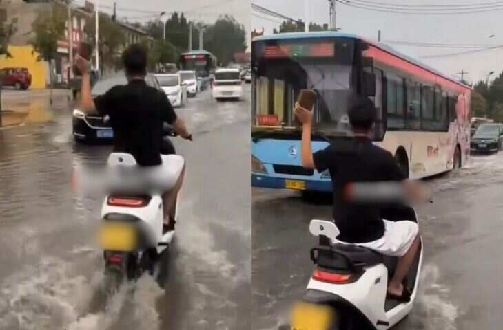 अभी जो वीडियो वायरल हो रहा है, उसमें दिख रहा है कि बारिश के बाद सड़क पर काफी पानी जमा हो गया है। अब ऐसे में सबसे ज़्यादा दिक्कत दोपहिया वाहन चालकों को होती है क्योंकि जब कार और बस जैसे वाहन तेज़ गति से चलते हैं, तो पानी के छींटे इन लोगों पर पड़ते हैं। एक शख्स ने इसका हल निकाला। स्कूटर चलाते हुए वह एक हाथ से हैंडल और दूसरे हाथ में ईंट पकड़े हुए है। वह इशारों-इशारों में लोगों से कह रहा है कि अगर उन्होंने ठीक से गाड़ी नहीं चलाई, तो वह ईंट से उनकी गाड़ी का शीशा तोड़ सकता है। इसी वजह से यह वीडियो भी वायरल हो रहा है।
